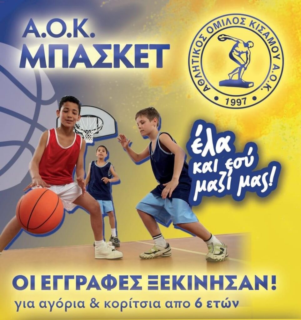 Οι εγγραφές εχουν ήδη ξεκινήσει ,για εγγραφές και πληροφορίες το γραφείο του ΑΟΚ που βρίσκεται στο Δημοτικό Στάδιο Κισάμου και θα είναι ανοιχτό από τις 17:00 – 19:00 όλα τα απογεύματα από Δευτέρα μέχρι Παρασκευή.