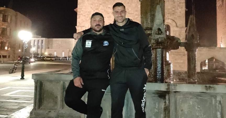 Ο φροντιστής των Χανίων Αποστόλης Κουνδουράκης συνάντησε τον κουμπάρο του και πρώην παίκτη του Α.Ο.Χανιά (τα καλά χρόνια) Τάσο Παγώνη.