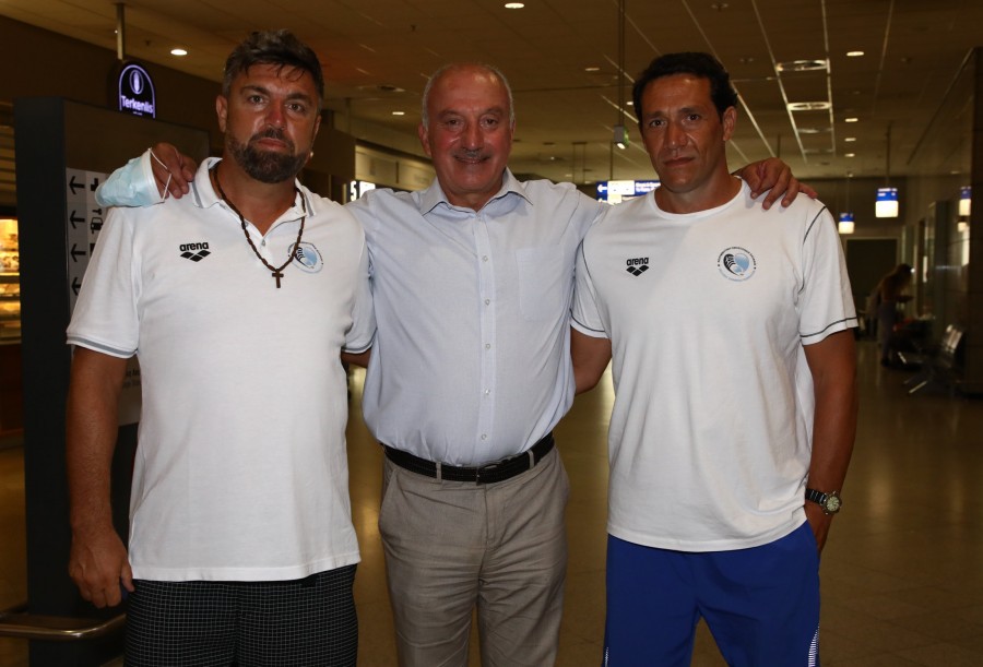 Μαζί τους, ο ομοσπονδιακός τεχνικός Ηλίας Μαχαίρας, ο συνεργάτης του Θόδωρος Ανδρεάκος, ο φυσικοθεραπευτής Κώστας Αποστολόπουλος, ο διεθνής μας διαιτητής Σπύρος Αχλαδιώτης και ο Α’ Αντιπρόεδρος της ΚΟΕ Λεωνίδας Αθανασιάδης (αρχηγός αποστολής).