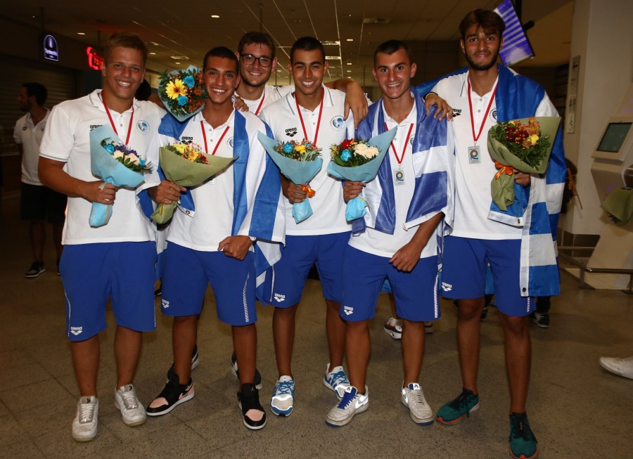 Οι νεαροί διεθνείς πολίστες, με τα μετάλλια στο στήθος, οι προπονητές τους, αλλά και ολόκληρη η αποστολή γνώρισε αποθεωτική αποδοχή κατά την άφιξη στο αεροδρόμιο «Ελευθέριος Βενιζέλος» από τους εκπροσώπους της διοίκησης της Κολυμβητικής Ομοσπονδίας, συγγενείς και φίλους του αθλήματος, με χειροκροτήματα, ανθοδέσμες, συνθήματα θριάμβου και την ιαχή «Ελλάς, Ελλάς».