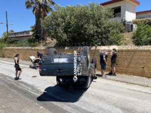 Χανιά: Απίστευτη τούμπα αγροτικού στη λεωφόρο Μουρνιών!