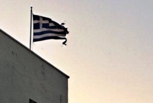 Ελληνική σημαία που είναι “κομμάτια” κυματίζει σε δημόσιο κτήριο στα Χανιά