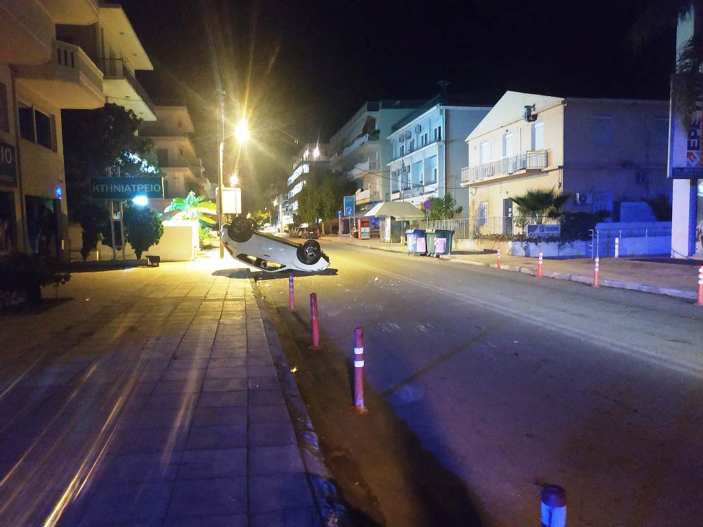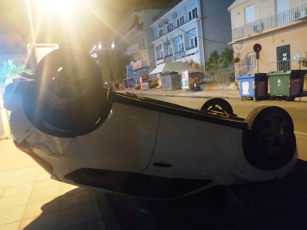 Ένα Ι.Χ. επιβατηγό αυτοκίνητο ήταν ανάποδα στον δρόμο σε κοντινή απόσταση από το Εργατικό κέντρο Χανίων.