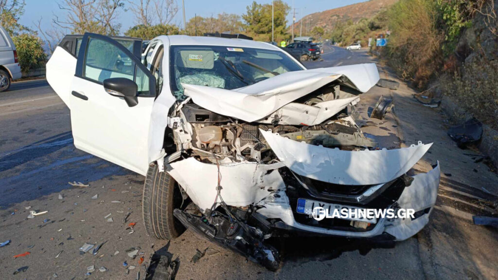 Ενοικιαζόμενο αυτοκίνητο με οικογένεια τουριστών που κινείτο προς Χανιά στην διασταύρωση των Μεγάλων Χωραφιών εξετράπη της πορείας με αποτέλεσμα να πέσει σε αυτοκίνητο που κινείτο από Χανιά προς Ρέθυμνο ενώ στην συνέχεια ενεπλάκη ακόμα ένα αυτοκίνητο στο τροχαίο.
