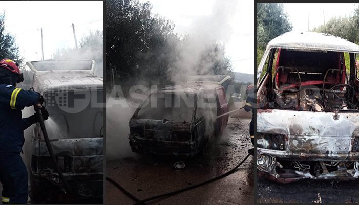 Πρόκειται για ένα μίνι φορτηγάκι στο οποίο ξέσπασε φωτιά σήμερα με τον 75χρονο οδηγό του, να προλαβαίνει να βγει εκτός του οχήματος πριν αυτό τυλιχθεί στις φλόγες.