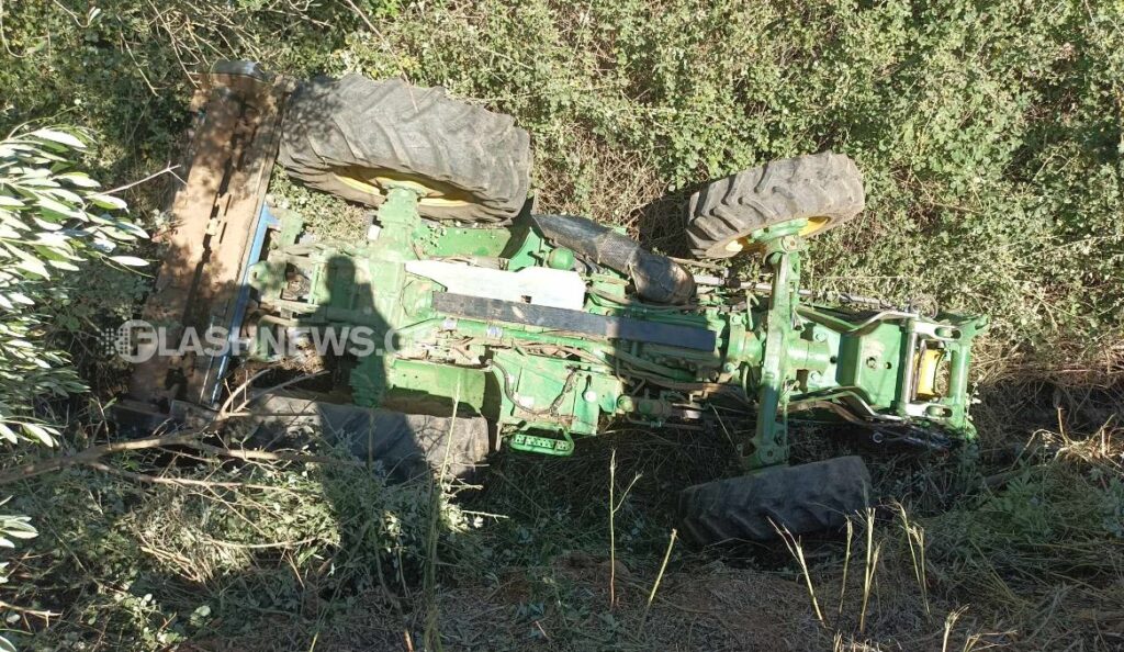 Στο σημείο μετέβησαν και αστυνομικοί για να ερευνήσουν το τι ακριβώς συνέβη και το τρακτέρ ανετράπη σε χαντάκι βάθους περίπου 2,5 μέτρων.
