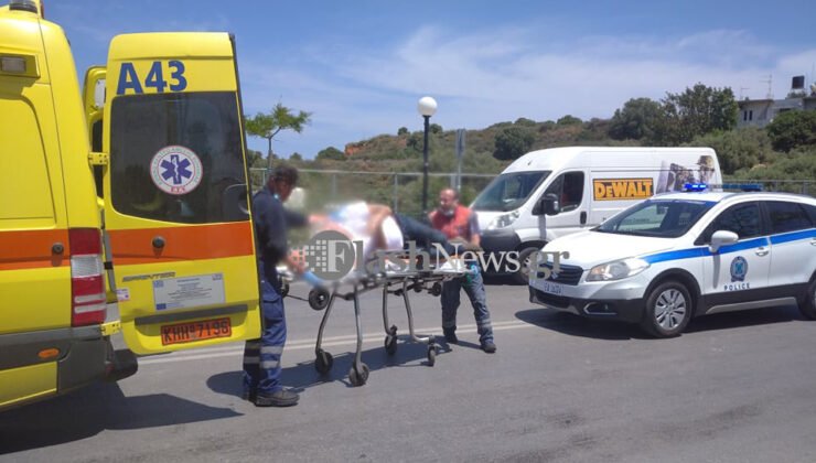 Ασθενοφόρο του ΕΚΑΒ έφτασε άμεσα στο σημείο και παρέλαβε τον τραυματία για να τον μεταφέρει στο νοσοκομείο Χανίων.