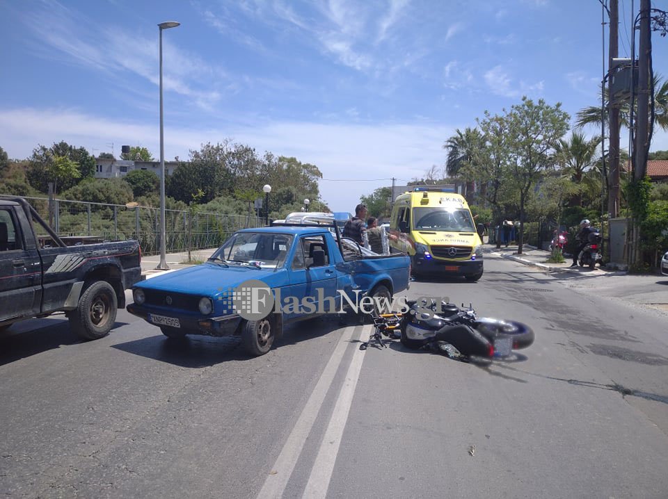 Κάτω από αδιευκρίνιστες συνθήκες, μηχανάκι συγκρούστηκε με αγροτικό ΙΧ με συνέπεια τον τραυματισμό του οδηγού του δίκυκλου, ο οποίος, ωστόσο, είχε τις αισθήσεις του.