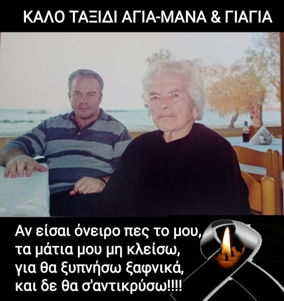 “Καλό ταξίδι αγαπημένη μας,τα παιδιά τα εγγόνια και τα δισέγγονα σου σ’ευχαριστούν για όλα όσα έκανες για μας”.