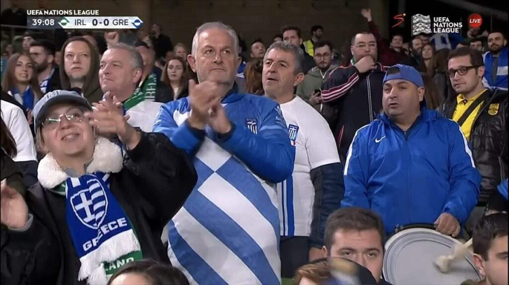Με φωνές, συνθήματα και τραγούδια ο σύλλογος που ακολουθεί τα τελευταία 20 χρόνια την Εθνική μας ομάδας έδωσε ώθηση για τη μεγάλη νίκη της ομάδας μας.