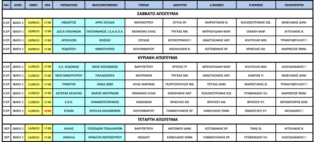 ΤοπικόΕΠΣΧ: Ανακοινώθηκαν οι διαιτητές των αγώνων για το Κύπελλο Χανίων 08 Σεπ Η ΕΠΣ Χανίων ανακοίνωσε τους διαιτητές των αγώνων της α’ φάσης του Κυπέλλου Χανίων. Αναλυτικά οι ορισμοί: