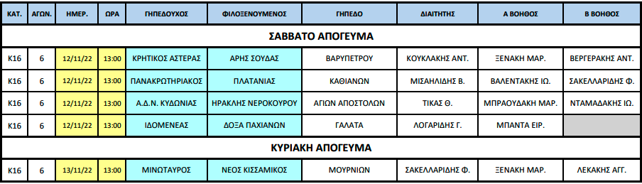 Δείτε το πρόγραμμα αγώνων στο πρωτάθλημα Κ16.