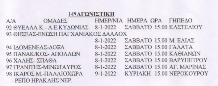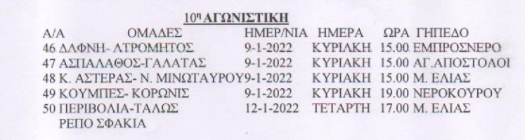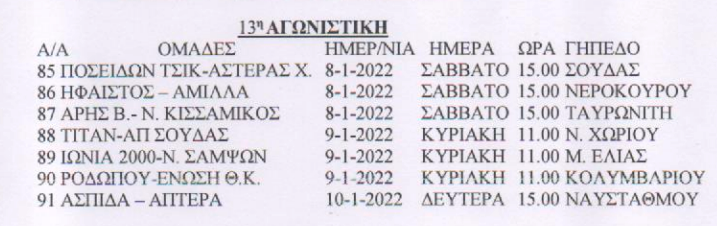 Το Σαββατοκύριακο 8 και 9 Ιανουαρίου 2021 επιστρέφει η δράση στα τοπικά Χανίων.
