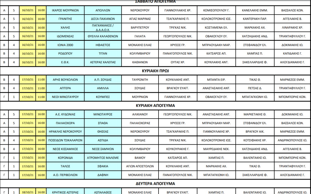 Τοπικό, IN THE SPOTLIGHTΕΠΣΧ: Οι διαιτητές σε Α’, Β’ και Γ’ τοπικό Χανίων 14 Οκτ Ορίστηκαν οι διαιτητές από την ΕΠΣ Χανίων. Σε Α’, Β’ και στη Γ’ κατηγορία που κάνει πρεμιέρα. Αναλυτικά: