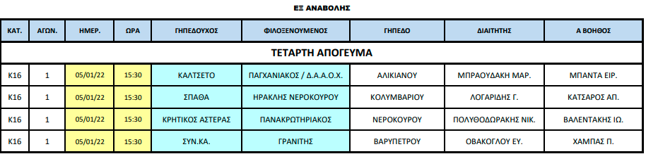 Τοπικό, ΥποδομέςΕΠΣΧ: Οι διαιτητές στα “εξ αναβολής” των Κ16 31 Δεκ Τα ματς θα γίνουν στις 5 Ιανουαρίου. Αναλυτικά