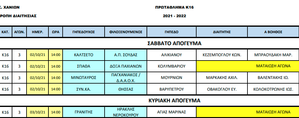 Υποδομές, ΤοπικόΕΠΣΧ: Οι διαιτητές στα Κ16 – Ποια ματς ματαιώνονται 01 Οκτ Οι διιατητές για το προσεχές Σαββατοκύριακο. Όπως ενημέρωσε η ΕΠΣ Χανίων: