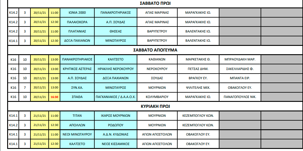 Ο ορισμός των διαιτητών σε Κ16 και Κ14.
