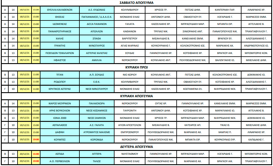 Αναλυτικά οι διαιτητές όπως αναρτήθηκαν από την ΕΠΣ Χανίων: