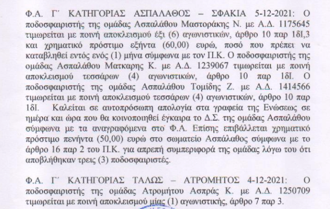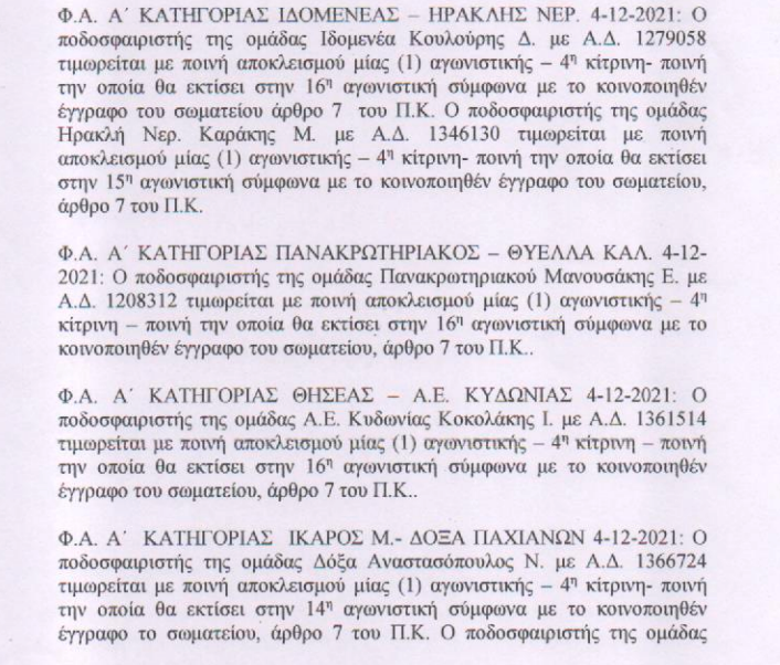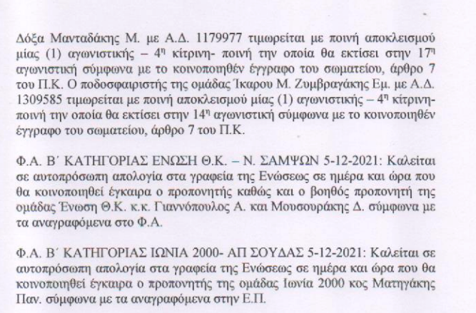 ΕΠΣΧ: Οι ποινές στο τοπικό Χανίων