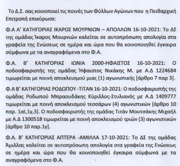 Τι ποινες ανακοίνωσε η ΕΠΣΧ