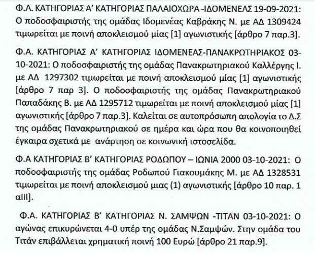 ΕΠΣΧ: Οι ποινές της προηγούμενης αγωνιστικής