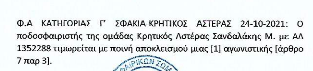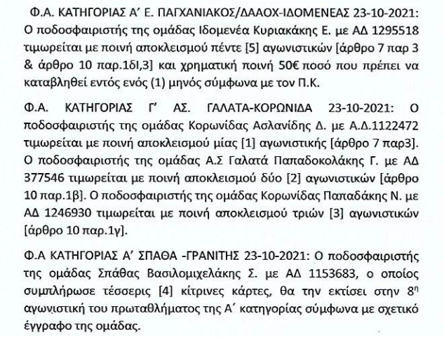 Τοπικό, IN THE SPOTLIGHTΕΠΣΧ: Το ποινολόγιο της προηγούμενης αγωνιστικής 29 Οκτ Η ΕΠΣ Χανίων ανακοίνωσε τις ποινές της αγωνιστικής που πέρασε για τις τοπικές κατηγορίες. Αναλυτικά: