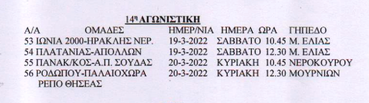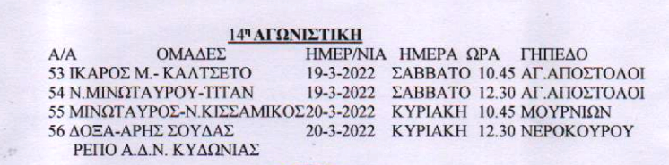 ΕΠΣΧ: Το πρόγραμμα στα Κ14