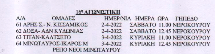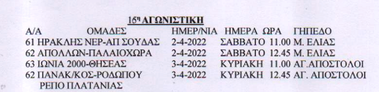 ΥποδομέςΕΠΣΧ: Το πρόγραμμα στα Κ14 29 Μαρ Δείτε το πρόγραμμα Σαββατοκύριακου και στους δύο ομίλους. 1ος Όμιλος 2ος Όμιλος