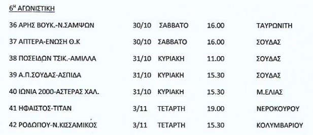 ΤοπικόΕΠΣΧ: Το πρόγραμμα στο τοπικό Χανίων το προσεχές ΣΚ 26 Οκτ Γεμάτο “δράση” το τοπικό Χανίων και το προσεχές Σαββατοκύριακο. Δείτε αναλυτικά τα προγράμματα: Α’ ΕΠΣΧ (7η αγωνιστική) Β’ ΕΠΣΧ (6η αγωνιστική) Γ’ ΕΠΣΧ (3η αγωνιστική)