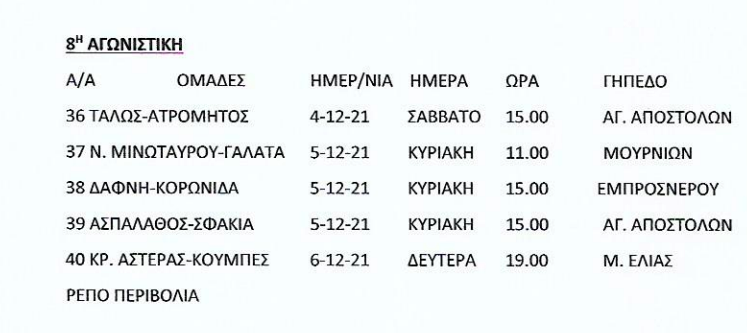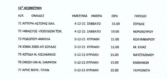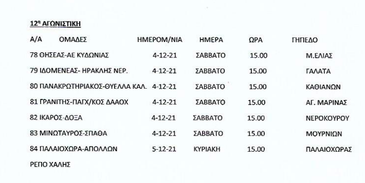 Τοπικό, IN THE SPOTLIGHTΕΠΣΧ: Το πρόγραμμα του Σαββατοκύριακου 30 Νοέ Δείτε τι αγώνες περιλαμβάνονται σε Α, Β και Γ’ κατηγορία Χανίων το προσεχές Σαββατοκύριακο. Ένα ματς της Γ’ κατηγορίας θα γίνει Δευτέρα (6/12). Α’ ΕΠΣΧ Β’ ΕΠΣΧ Γ’ ΕΠΣΧ