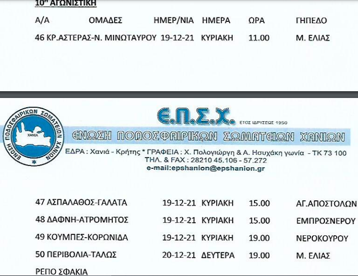 Τοπικό, IN THE SPOTLIGHTΕΠΣΧ: Το πρόγραμμα του Σαββατοκύριακου στο τοπικό Χανίων 15 Δεκ Δείτε τι αγώνες περιλαμβάνονται για το τοπικό Χανίων, το προσεχές Σαββατοκύριακο (18 και 19 Δεκεμβρίου). Α’ ΕΠΣΧ Β’ ΕΠΣΧ Γ’ ΕΠΣΧ