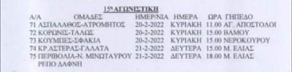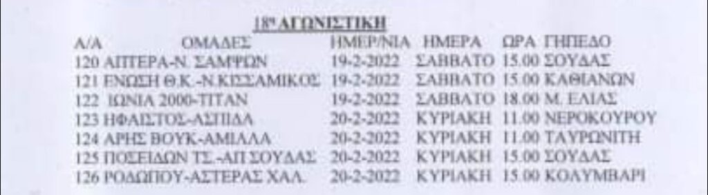 ΕΠΣΧ: Το πρόγραμμα του Σαββατοκύριακου στο τοπικό Χανίων
