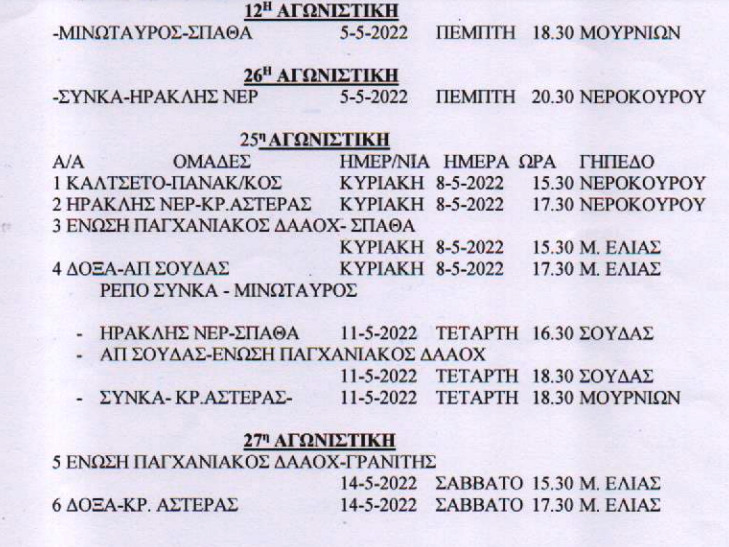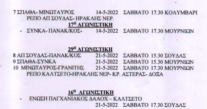 Δείτε το πρόγραμμα που ακολουθεί στα Κ16 της ΕΠΣ Χανίων.