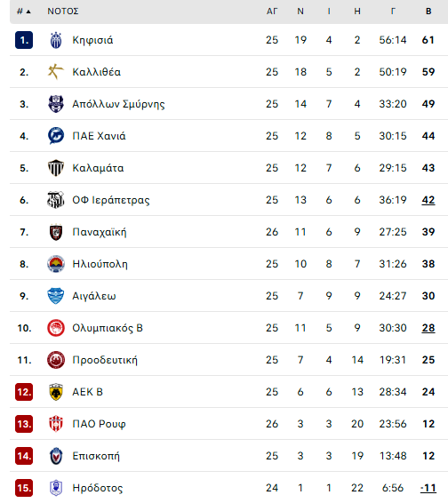 Αναλυτικά η βαθμολογία του Β’ ομίλου της Super League 2: