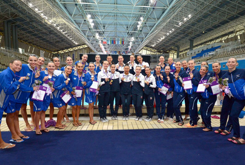 Είναι η Εθνική μας ομάδα καλλιτεχνικής κολύμβησης με τις 12 αθλήτριες που την συγκροτούν και τους συνοδούς τους, καθώς επίσης και οι 8 από τους 15 συνολικά κολυμβητές της Εθνικής μας ομάδας.