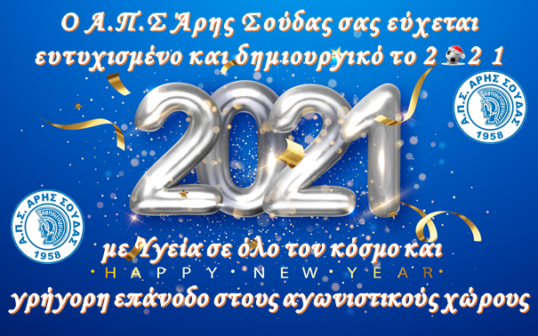 “Το σωματείο του ΑΡΗ ΣΟΥΔΑΣ σας εύχεται Ευτυχισμένο και Δημιουργικό το 2021 με Υγεία σε όλο τον κόσμο και γρήγορη επάνοδο στους αγωνιστικούς χώρους”.