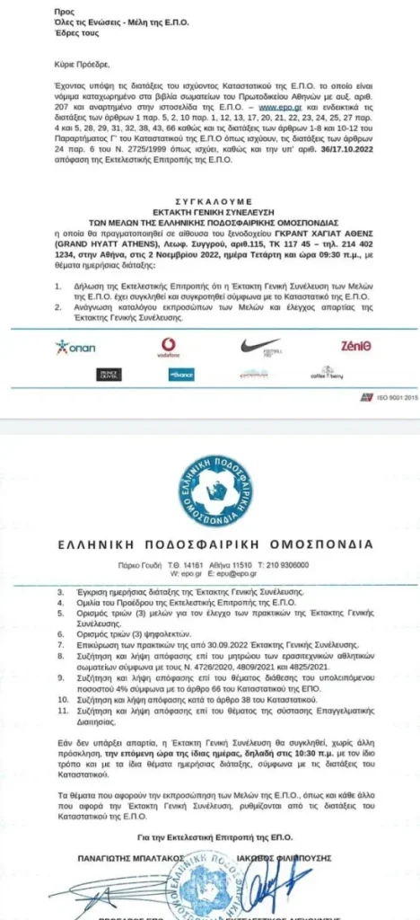 Το SoccerPlus δημοσιεύει την περόσκληση της ΓΣ όπως κοινοποιήθηκε από την ΕΠΟ: