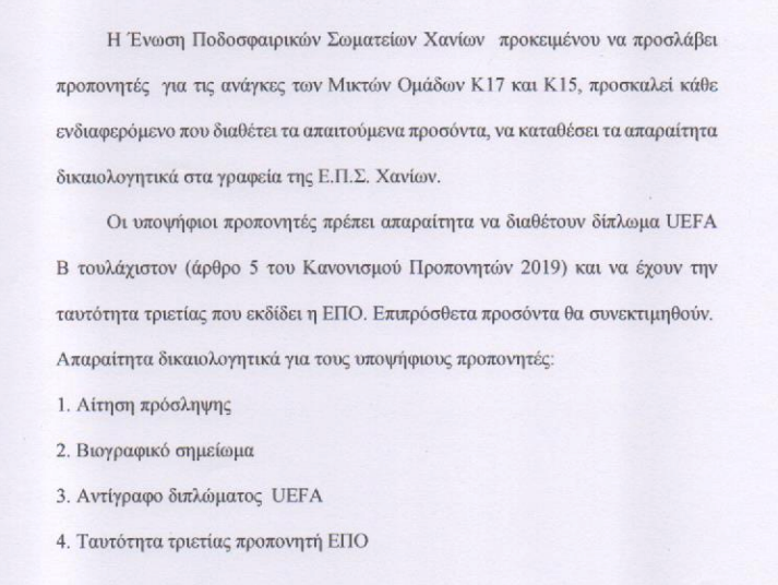 Τοπικό, IN THE SPOTLIGHTΗ ΕΠΣ Χανίων ζητά Ενωσιακούς προπονητές – Μέχρι πότε η προθεσμία 23 Νοέ Ποια τα δικαιολογητικά που απαιτούνται.