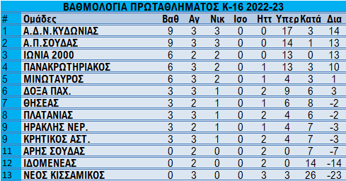 Α.Π.ΣΟΥΔΑΣ – ΙΔΟΜΕΝΕΑΣ 8-0 (Βιολάκης 2, Βογιατζής 2, Τζανάκης, Σαμπανάι, Παρασκάκης, Βαρουχάκης)