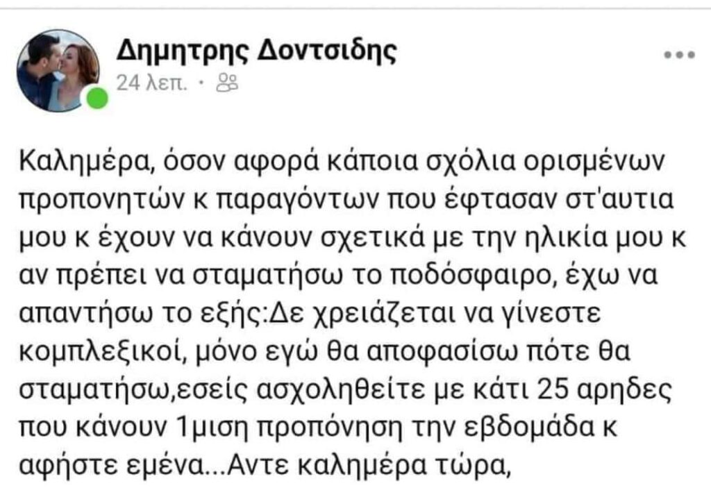Ένα άκρως καυστικό σχόλιο ανάρτησε ο έμπειρος Δημήτρης Δοντσίδης.