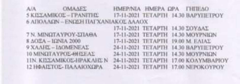 Τοπικό, IN THE SPOTLIGHTΚύπελλο Χανίων: Το πρόγραμμα της φάσης των “16” 05 Νοέ Σε δυο “δόσεις” η φάση των 16 του Κυπέλλου Χανίων. Τα μισά ματς στις 17/11 και τα υπόλοιπα στις 24/11. Αναλυτικά