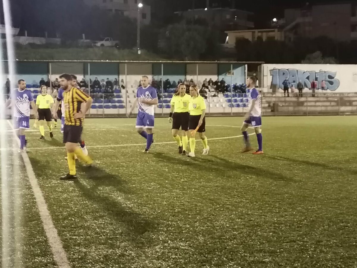 Ο Κουμπές άνοιξε το σκορ με πέναλτι στο 5′ με τον Μπαλαντινάκη, αλλά στο 10′ ο Σαριδάκης ισοφάρισε για τον Τάλω.