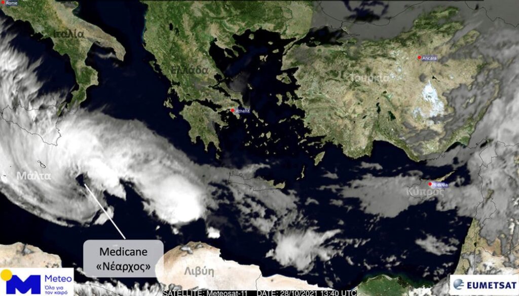 Πρόκειται για έναν νέο μεσογειακό κυκλώνα (Medicane), με την ονομασία «Νέαρχος», που σχηματίστηκε στο Νότιο Ιόνιο σήμερα.