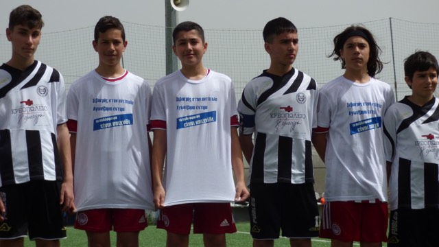 Γι αυτό λίγο πριν την έναρξη του παιχνιδιού της περασμένης Κυριακής του πρωταθλήματος Κ14, προέβει σε μια συμβολική κίνηση έχοντας τυπώσει μπλουζάκια και βγάζοντας φωτογραφίες με την αντίπαλη ομάδα μέσα από το μήνυμα…