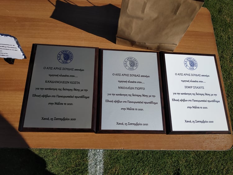 Tις βραβεύσεις έκαναν ο πρόεδρος του Άρη Σούδας Νίκος Κλωθάκης και εκ μέρους της ΕΠΣΧ, ο Κώστας Πρωτοψάλτης.