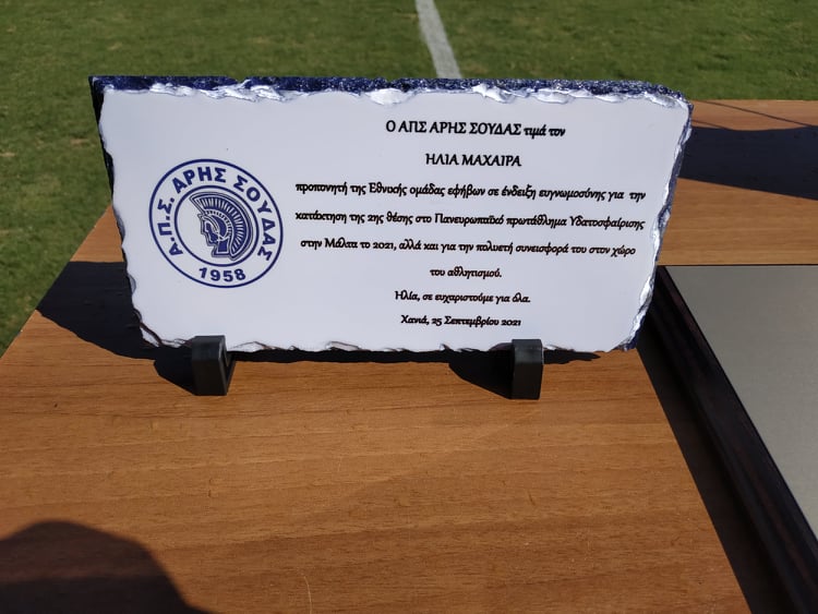 Πριν ξεκινήσει το παιχνίδι με τον Διαγόρα στα Περιβόλια, ο Άρης Σούδας τίμησε τον Χανιώτη Ομοσπονδιακό προπονητή της Εθνικής Εφήβων πόλο (ασημένιο μετάλλιο στο Πανευρωπαϊκό) Ηλία Μαχαίρα και τους Χανιώτες διεθνείς εφήβους, Νικολαΐδη, Καντανολέων, Σπάχιτς.