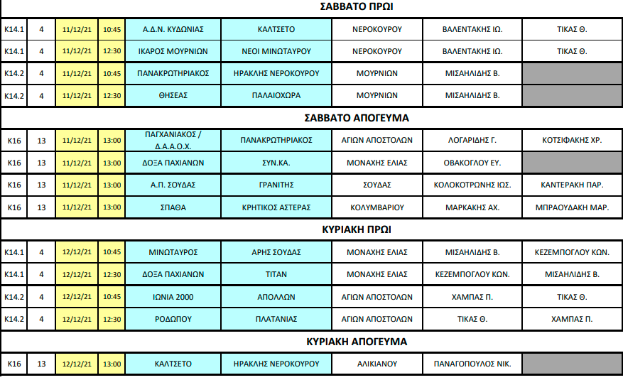 Η ΕΠΣ Χανίων ανακοίνωσε τις διαιτησίες στα ματς του Σαββατοκύριακου για τις διαιτησίες Κ16 και Κ14.