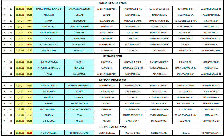 Τοπικό, IN THE SPOTLIGHTΟι διαιτητές στα ματς του ΣΚ για το τοπικό Χανίων – Ποιοι “σφυρίζουν” τα ντέρμπι της Β’ ΕΠΣΧ 20 Ιαν Αναλυτικά οι ορισμοί των διαιτητών της προσεχούς αγωνιστικής, στις τρεις κατηγορίες στο τοπικό Χανίων. Δείτε τους ορισμούς