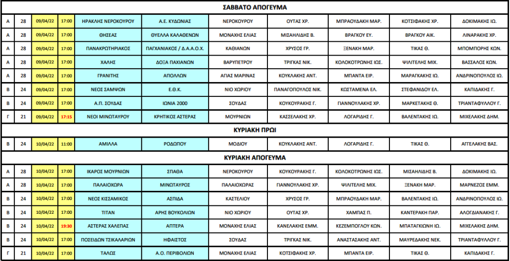 ΤοπικόΟι ορισμοί των διαιτητών στο τοπικό Χανίων 07 Απρ Δείτε τους ορισμούς των αγώνων του Σαββατοκύριακου στο τοπικό. Αναλυτικά
