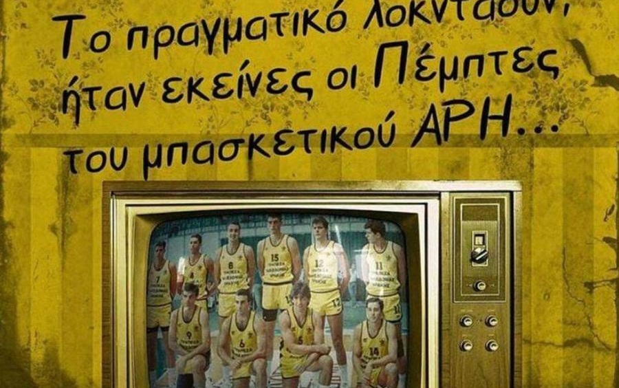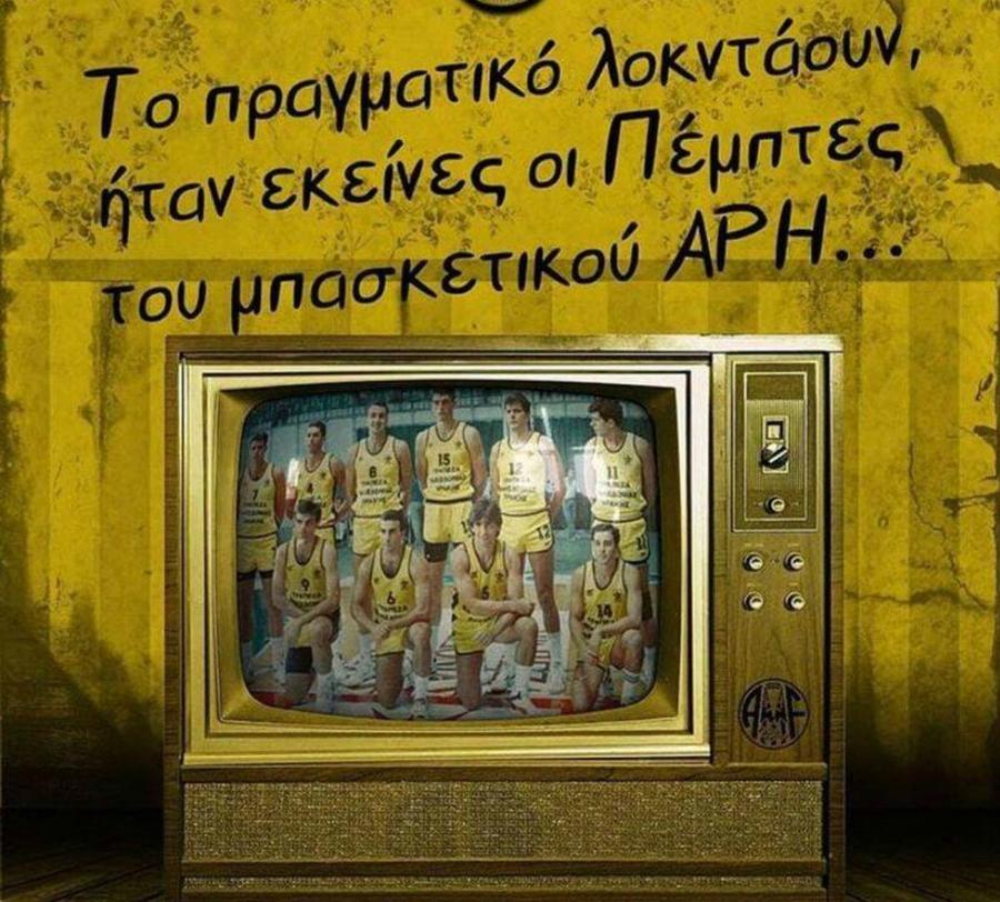 Στο διαδίκτυο κυκλοφορεί μια πολύ ωραία φωτογραφία με μια τηλεόραση που δείχνει την ιστορική ομάδα του Άρη και μια τρομερή ατάκα που γράφει «Το πραγματικό λοκ ντάουν ήταν εκείνες οι Πέμπτες του μπασκετικού Άρη»!